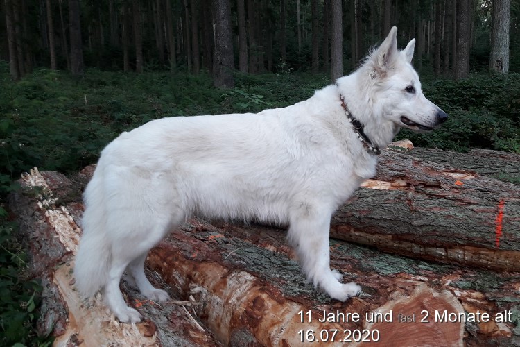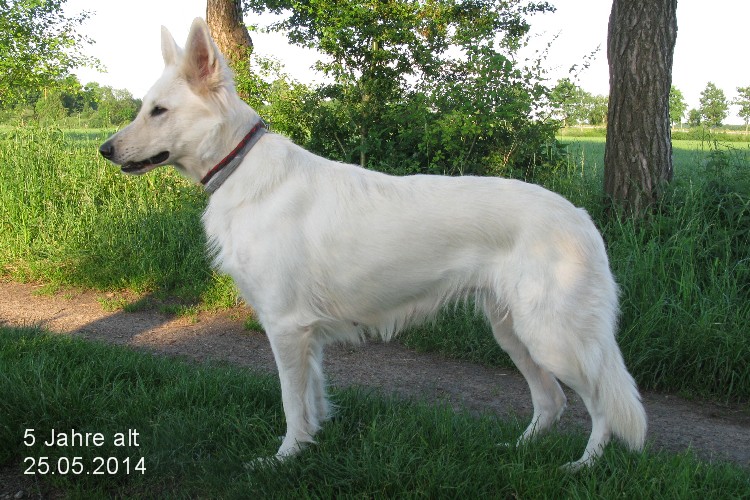Macht trotz abgehaartem Fell, nach ihrem diesjährigen Wurf (siehe G-Wurf), eine gute Figur |